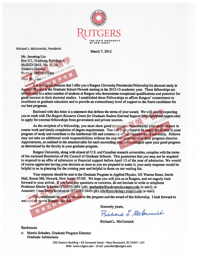 教授对我们的申请者非常的感兴趣,并积极的约定要面试,后来在面试5天后,发来录取和奖学金。