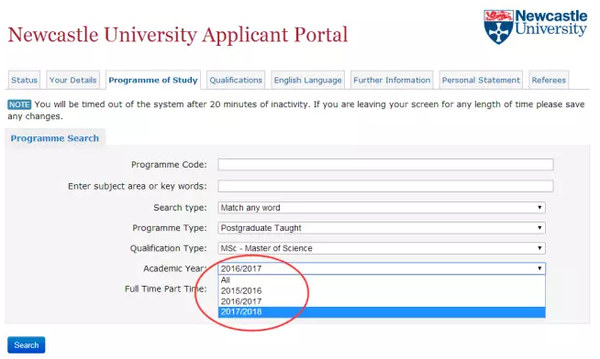 一起看看纽卡斯尔大学官网的申请截图吧,2017/2018的申请已经开始: