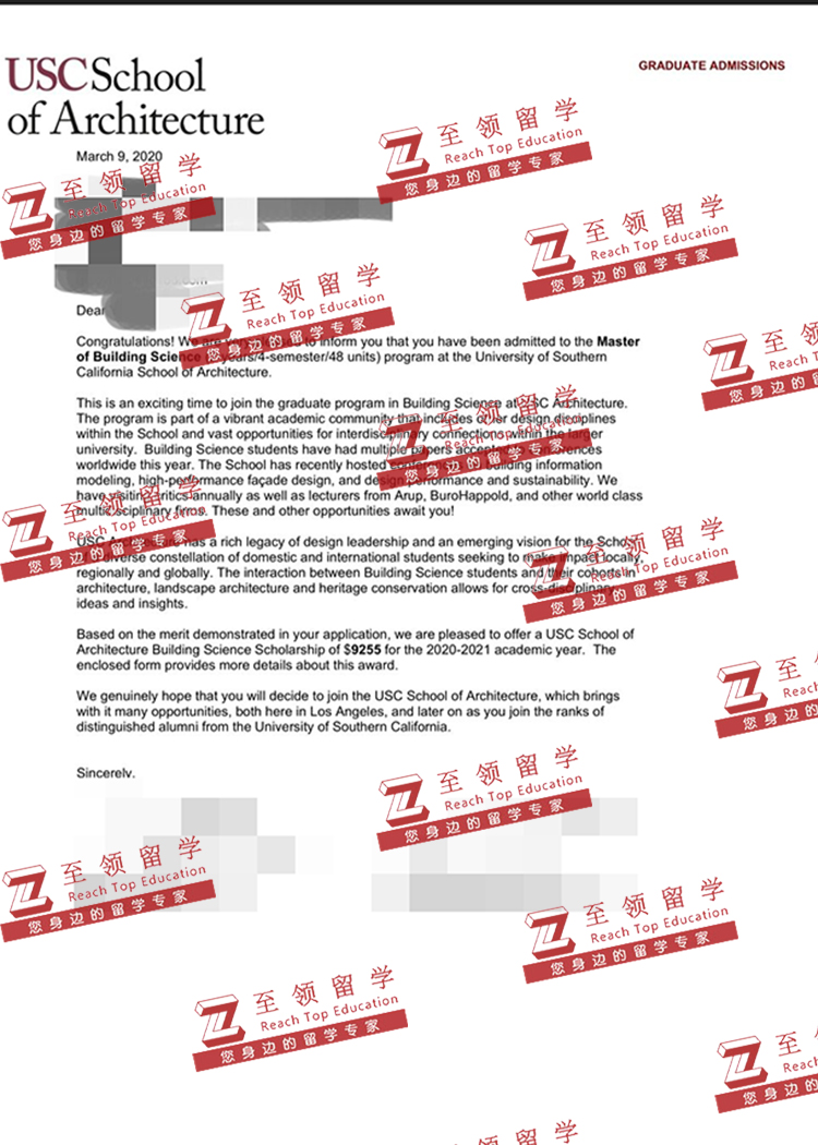 录取结果:University of Southern California,Master of Building Science南加州大学建筑科学硕士录取+奖学金$9925